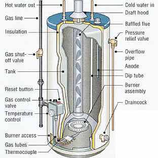 a gas burner or electric heating elements. The tank is lined with porcelain
