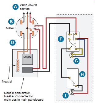 Wiring for a typical "off-peak" electric water heater circuit. A separate watt-hour meter/time clock controls the circuit to the water heater. The utility sets the time clock to turn the power off during certain peak periods of the day. This type of circuitry is called "time-of-day" programming. ---- ![]() Above: Fgr 10. === MAIN Neutral Meter 240/120-volt service Double-pole circuit breaker connected to main bus in main panelboard Above: FGR. 10 The meter contains a set of contacts that can be controlled by the utility. The water heater circuit is fed from the main panelboard, through the contacts, then to the water heater. ----