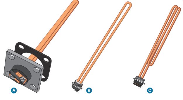 Run separate branch circuit to panelboard. NEC 422.30 requires a disconnecting means. NEC 422.31(B) permits the branch-circuit switch or circuit breaker to serve as the disconnecting means if within sight of the water heater, or if capable of being locked in the open position. Listed breaker lock-off devices are available. The locking feature must be permanent. An equipment grounding conductor is required if overcurrent device is rated greater than 20 amperes or FMC is longer than 6 ft (1.8 m). See 250.118. Lower heating element; Lower thermostat; Discharge pipe; Floor drain; Shut-off valves ==== Combination Pressure/ Temperature Safety Relief Valves Look at FGR. 5. A pressure/temperature relief valve is an important safety device installed into an opening in the water heater tank within 6 in. (150 mm) of the top. The opening is provided for and clearly marked by the manufacturer. Many water heater pressure/temperature relief valves are factory installed, although some models still require installation of the valve by the installing contractor. Proper discharge piping must be installed from the pressure/temperature relief valve downward to within 6 in. (150 mm) of the floor, preferably near a floor drain. Terminating the discharge pipe to within 6 in. (150 mm) of the floor is important to protect people from injury from scalding water or steam discharge should the relief valve activate for any reason. This also protects electrical equipment in and around the water heater from becoming soaked should the relief valve operate. Pressure/temperature relief valves are installed for two reasons. Their pressure/temperature sensing features are interrelated. • Pressure: Water expands when heated. Failure of the normal temperature thermostat and the high-temperature-limiting device to operate could result in pressures that exceed the rated working pressure of the water heater tank and the plumbing system components. The relief valve, properly installed and properly rated to local codes, will open to relieve the excess pressure in the tank to the predetermined set ting marked on the relief valve. The rating is stamped on the valve's identification plate. • Temperature: Should runaway water heating conditions occur within the water heater, temperatures far exceeding the atmospheric boiling point of water (2128F [1008C]) can take place. Under high pressures, water will stay liquid at extremely high temperatures. For a typical municipal water supply pressure of 45 psi, water won’t boil until it reaches approximately 2908F (1438C). At 2908F (1438C), opening a faucet, a broken pipe, or a ruptured water heater tank would allow the pressure to instantly drop to normal atmospheric pressure. The superheated water would immediately flash into steam, having about 1600 times more volume than the liquid water occupied. This blast of steam can be catastrophic, and could result in severe burns or death. Thus, the function of the temperature portion of the pressure/temperature relief valve is to open when a temperature of 2108F (998C) occurs within the water heater tank. Properly rated and maintained, the pres sure/temperature relief valve will allow the water to flow from the water heater through the discharge pipe at a rate faster than the heating process, thereby keeping the water temperature below the boiling point. Should the cold water supply be shut off, the relief valve will allow the steam to escape without undue buildup of temperature and pressure in the tank. Requirements for relief valves for hot water supply systems are found in the ANSI Standard Z21.22. Sizes: Residential electric water heaters are available in many sizes, such as 6, 12, 15, 20, 30, 32, 40, 42, 50, 52, 66, 75, 80, 82, 100, and 120 gallons. Corrosion of Tank To reduce corrosion of the steel tank, most water heater tanks are glass lined. Glass lining is a combi nation of silica and other minerals (rasorite, rutile, zircon, cobalt, nickel oxide, and fluxes). This special mix is heated, melted, cooled, crushed, then sprayed onto the interior steel surfaces and baked on at about 16008F (8718C). To further reduce corrosion, aluminum or magnesium anode rods are installed in special openings, or as part of the hot water outlet fitting, to allow for the flow of a protective current from the rod(s) to any exposed steel of the tank. This is commonly referred to as cathodic protection. Corrosion problems within the water heater tank are minimized as long as the aluminum or magnesium rod(s) remain in an active state. Anodes should be inspected at regular intervals to determine when replacement is necessary, usually when the rod(s) is reduced to about one-third of its original diameter, or when the rod's core wire is exposed. Further information can be obtained by contacting the manufacturer, and consulting the installation manual. Some water heater tanks are fiberglass or plastic lined. Heating Elements: The wattage ratings of electric water heaters can vary greatly, depending on the size of the heater in gallons, the speed of recovery desired, local electric utility regulations, and codes. Typical wattage ratings are 1500, 2000, 2500, 3000, 3800, 4500, and 5500 watts. A resistance heating element might be dual rated. For example, the element might be marked 5500 watts at 250 volts, and 3800 watts at 208 volts. Most residential-type water heaters are connected to 240 volts except for the smaller 2-, 4-, and 6-gallon point of use sizes generally rated 1500 watts at 120 volts. Commercial electric water heaters can be rated single-phase or 3-phase, 208, 240, 277, or 480 volts. UL requires that the power (wattage) input must not exceed 105% of the water heater's nameplate rating. All testing is done with a supply voltage equal to the heating element's rated voltage. Most heating elements may burn out prematurely if operated at voltages 5% higher than for which they are rated. To help reduce the premature burnout of heating elements, some manufa