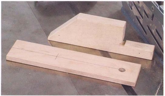 If adjusting the stops on the gauge won't produce smooth, square crosscuts, it is likely that the miter-gauge slot is not parallel to the blade. The only solution is to reposition the table as outlined in "Aligning the Blade and Miter-Gauge Slot" on p. 73. If you are only going to check the miter gauge for square cuts, you'll need one board around 1:1 in. thick, 3 in. to 4 in. wide, and 2 ft. long. If you also want to set the 45-degree stops, you will need a second board the same size. The stock can be either hardwood or a tight-grained softwood with no large knots. You should plane the stock flat and even in thickness and carefully joint one long edge straight and square. Mark V's on both wide faces of the board pointing to the jointed edge. Always make your test cuts with this edge against the miter gauge. Place the gauge in the slot you regularly use for crosscutting, then place the test board against the gauge with the good edge against the face and trim VI in. off the end. Using the square, check the edge and make the appropriate adjustment on the stop bolt. When the cut is square, adjust the pointer to 0 degrees (see the photo above). To adjust the 45-degree setting, turn the head of the gauge toward the blade and lock it against the stop. Take one of the boards and trim its end off, making sure you keep the good edge against the face. Make the same cut on the second board. When the two boards are butted together, they should form a 90-degree corner. Adjust the stop screw, if needed, until it is exactly 90 degrees. ------------------- Check Miter Slots for Parallel The two miter slots in the saw's table may not be exactly parallel or precisely the same width. If you tune up the gauge in the left-hand slot, it may need to be readjusted when you use it in the right-hand slot. -------------------- Prev. | Next | Article Index | Home |