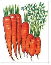 Since the seeds are slow to germinate, it is helpful to plant radish seeds along with them to mark the row. The radishes will be ready to harvest about the time the carrots start coming up. Carrots do best in rich, deep, sandy loam but will grow well in almost any soil that has been properly prepared. Dig up the soil to a depth of at least 1 ft., loosen it, and remove stones and other debris. This will allow the downward-growing carrot roots to develop properly. Heavy clay soils often cause carrots to fork. Lighten such soils by working in a goodly proportion of sand or humus. Sow carrot seeds 1/4-1/2 in. deep, 15 to 20 seeds to the inch in rows 16-24 in. apart. Allow 4-5 ft. of row per person. Thin the seedlings to 2 in. apart when they are 2-4 in. high or when the roots are about as thick as your little finger (pull up a few carrots to check root size). The tender baby carrots that have been thinned out make delicious eating. The remaining carrots may be harvested at any time, depending on how large you want them. Keep the soil moist until the seedlings have come up. For a fall crop sow in the garden in early July. Carrots keep well in the refrigerator or in winter storage.