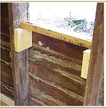 ![]() After the sill was stripped and sanded, I installed two angled blocks for the sill to rest on. I was careful to make sure that the sill would end up level, because the window will rest on this sill. These were just 2x6 scraps cut at a 10 degree angle and screwed onto the studs. The sill had not been fastened down yet.