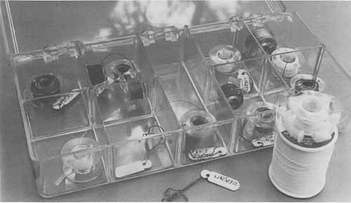 Fig. 13—10 Plastic gadgets clip onto spools of thread to match bobbins