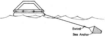 Improvising a sea anchor is easy if a sturdy line is available, as well as anything that will create a drag when towed. For example, oil skins, cloths, or cans could be used (Fig. 7-5).