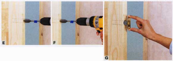temporary trim on the bottom of the door. F. Tack one nail on a shim