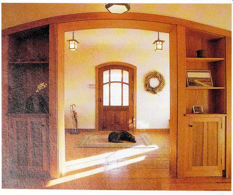 Built-in cabinets can be customized to fill small niches for individualized storage, or they can be built on a larger scale to create pseudo-walls that subdivide a room. When you design a bank of built-in cabinets, consider height and depth, complexity of pattern, and a balance of concealed and open storage. A unit that continues to the ceiling will look like part of the wall itself, while stopping it short of the ceiling provides a space for display or lighting. In many cases, base cabinetry alone supplies ample storage , al lowing room for a visual treat above-be it a window, piece of art, OT elaborate mirror. The upper half of a wall-sized bank of built-in cabinets demands visual attention in a room, and if it's not in balance with the rest of the space, it may look disproportionate and overwhelming. A good way to lighten the effect of a large built-in is to use open shelving or cabinets with glass doors on top, which will also show off your more artful items to best effect. Objects displayed on visible shelves will further benefit from lighting, either within the cabinet or, if it's open shelving, from nearby spot lighting installed on the wall or ceiling. The lower half of a large-scale built-in traditionally comprises base cabinets fitted with solid doors or drawers, and for good reason. Doors and drawers can be locked or child-proofed if necessary, and they can do the dirty work of masking potential disarray and items that just aren't that good-looking. The contrast between solid lower cabinets and open upper cabinets or shelves can be exploited to good benefit with color, texture , and light, giving a wall of storage (and the rest of the room) visual definition. Of course, there's no rule that says base cabinets have to be closed while upper cabinets have to be open. Open shelving is less expensive, and for some it's a preference: There's nothing more satisfying to book lovers than shelves of books from floor to ceiling. Conversely, a solid wall of closed cabinetry, such as the beautiful banks of drawers and doors built by Shaker communities, can be a peaceful sight for tired eyes.