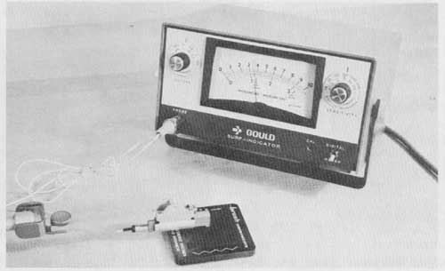 The electronic coordinate measuring machine is an indispensable tool for the inspector and gage laboratory. Many of these instruments re computer equipped, allowing calculations to made relative to the measurements being taken. Computer printouts may be easily obtained indicating graphs of measurement, as well as graphics illustrating the parts being measured. The computerized coordinate measuring machine is another example of the integration of digital readout electronics and computers into a precision mechanical system for modern high precision measurement applications. MEASUREMENT WITH ELECTRONICS REMOTE GAGING -- Electronic technology has come into wide use in measurement. Electronic equipment can be designed with greater sensitivity than mechanical equipment. Thus, higher discrimination can be achieved. Electronics can be applied in remote gaging applications ( FIG. C-35). In this application, there is no direct connection to the gage head. The head is free to move with the machine tool since there are no attached wires. This facilitates use of the gaging instruments.