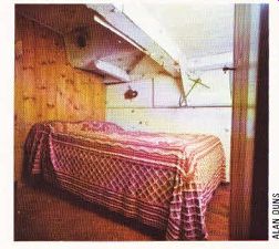The Thames sailing barge has suffered a ad demise in recent years. At the beginning of the century it was a common, and magnificent, sight on the East Coast of England and River Thames estuary. Now, most Thames barges have been broken up, or are rotting in derelict wharves. When artist-designer Allan Chidgey bought a disused barge to use as a studio he took on more than he expected, because he decided not only to convert it into a home but also to restore he hull. The result is an elegant sailing barge, fully rigged, which serves as a permanent home and studio. Its Thames-side mooring in front of distinctive Georgian church makes it an idyllic retreat. The Raven was built in 1904 as a traditional Thames sailing barge. It was used for carrying wheat and general cargo from the East Coast to London up to 1965. Long before that (in about 1948) the mast had been cut down and it had been converted to a motor barge. The raw material the designer had to work on was a wooden hull 80ft by 1 8ft, two open holds surrounded by decks, an engine room in the stern, and a fore-cabin, The barge leaked badly, and the hull was in very bad condition. The transformation involved a great deal of forethought and hard work, and a solution to he problems inherent in such a venture demanded a certain amount of ingenuity. First, the whole existing structure had to be made good, which involved stripping it down completely and burning off all the paint and tar. All internal steel was treated with rust sealer. The longest and most arduous task was the re-caulking of the decks (filling between the planks with waterproof jointing) to prevent leakage. This involved stripping out nearly a mile of 3in. seams and refilling them with oakum, tar and pitch. The decks were then re-bolted to strengthen them. A temporary wooden roof was erected over the exposed area to protect the interior while work was in progress. Even at this stage it was important to allow adequate ventilation to prevent rot. One of the worst problems was the damage that had been caused by steel plates which were fixed to the exposed woodwork to protect it from the steel grabs used for unloading cargo. These had corroded and eaten into the wood, leaving severe gashes and rents when they were removed. This was overcome by putting a Jin. layer of a plastic-based filler over the wood. This gives it a smooth surface while retaining its texture and appearance. The floor had also suffered considerable damage. A new floor was laid directly on to the old one, using old floorboards bought from demolition sites. Once they were cleaned and scraped and the nails had been knocked out, they provided a good, solid floor at minimal expense. They were sanded down with an industrial sander, then polished and coated with a polyurethane varnish to give extra durability Electricity on a houseboat is essential, as gas or oil lights are not bright enough for working or reading. However, a connection from the nearest power source involves a considerable voltage drop, so that only lighting, a refrigerator and ‘light' appliances such as record players can be run off electricity. Cooking is done with bottled gas, which is economical and convenient, as the containers are delivered by van. Water, which comes from the mains, is run off a large tank and pumped to a header tank to give adequate pressure to the kitchen and bathroom supply. The basin and sink had to be raised higher than is usual to allow outlets above the water line. The layout of the interior was determined by the need to use the low areas (maximum height 5ft 6in.) under the sailing beams. This was done by building a cabin on one side and a bathroom on the other, and placing the ends of both the bed and the bath under the lowest beam in each case, Tongued and grooved planking was used for the partition walls. To allow for the flexing of the vessel (iin.-1in.) with the movement of the tide, these walls had either to be hung from the ceiling and left clear of the floor, or fixed to the floor and left clear of the ceiling. The remaining gaps at the top or bottom were then disguised with beading. The space between this area and the existing forecabin-11ft x 18ft-was made into a kitchen/dining room. Cupboards and shelves were built on the partition walls and a bench seat was fixed against the side walls of the dining area. The floor beam running along the centre of the boat creates a natural division between the kitchen and the dining area. The forecabin is used as the main bedroom, and the remaining space (32ft x 18ft) in the rear of the boat is the sitting room/studio. The walls were painted white, and the wood work was treated with varnish to give color, Skylights in the roof give a generous amount of daylight, and a skyline view of a church. These skylights were recovered from other boats which were being broken up. When the new roof was built, the old curved hatch covers were forced down over a centre beam, leaving maximum headroom and giving a more pronounced and attractive curve to the ceiling. To give sufficient circulation of air, two hatches were built into the roof, one at each end. These also give access to the interior via ladders. Portholes were fitted into the sides of the roof to provide additional ventilation. This does not spoil the boat's exterior appearance or affect its sailing qualities. Heating is provided by slow-burning an thracite fires, which are both elegant and efficient. They heat the water and also help prevent condensation. A gas water heater is used in hot weather. Cupboards and bookshelves are built in, and free-standing furniture has been kept to a minimum. This is because the sloping floor makes it stand at a slight angle.
