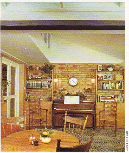 Sometimes a house has to be added on to gradually instead of in a single operation. Whatever the reason, this gives the owners a chance to co-operate more fully with the architect and the builders because decisions don’t have to be taken in a rush. And taking time brings the advantage that advice can be sought about problems that do not have a quick and obvious solution. The extensions to this house in Gerrard's Cross. Buckinghamshire, were undertaken in two stages, because the owner is an American executive who is never very sure how long he will be staying in one place. He had first to be certain he would be in that house for long enough to make any major extensions worth while. Once the decision was taken to add on, the work progressed remarkably quickly under the guidance of architect Pamela Morris. She was given separate briefs for the two extensions which were carried out two years apart, and details of the whole operation were built up by the owners and the architect as the job progressed. The first requirement was a family room to be added to the existing kitchen so that the owner ‘s wife could watch her four children play and continue with her chores at the same time. ‘Family rooms'-originally an American idea have spread to other countries and are excellent ways of creating a social center in the home where each member can enjoy his own area of activity. An additional reason for the extension was that the existing kitchen was too narrow to take a table large enough for the family to eat together-and the owner wanted somewhere to set up a bar for parties. After considering the various alternative schemes, Miss Morris and the owners decided on a most economical plan which meant no alteration at all to the existing kitchen and the minimum of disruption to the household. The external wall of the kitchen was partially removed, and a strengthening steel girder incorporated over the opening when the window was taken out. Fire resistant timber paneling was used on all the walls of the extension except one, which was left un plastered. Timbered walls give a cozy appearance to a room, because the tones of the natural wood add a warm glow to the furnishings. They are also long-wearing and need minimal care. The old window position made an excellent serving hatch for the bar in the center of the kitchen; a strip light was incorporated in the old window head detailing and the bar itself was covered in easily-cleaned plastic laminate. Wherever possible throughout the alterations, Miss Morris used what was there already rather than create new, and unnecessarily expensive features. The old back door was removed and the opening was paneled round. Louvered doors have been fitted in the opening and a shutter over the bar so that the whole room can be shut off completely if required. The existing waste pipes which had been on the external wall were now within the actual ‘den', behind removable panels for easy access, and a trap door was made in the new timber floor for access to a manhole. When the owner realized they would be staying in Britain for a further two years they planned a second stage of making additions to the house. The brief was for an extra bedroom, bathroom and some additional living-area also space for the newly acquired deep-freeze I The owners particularly liked the idea of extending the existing living room but also being able to close it off as a separate area if needed. Here they came up against a major problem adding anything on to the existing living room would cut most of the ground floor off from natural light. In fact, the previous occupants had moved because they thought adding on impossible. The owners didn’t want a whole glass roof, because the back of the house faced south, and it would be unbearably hot in summer. And the height of any new roof would be restricted as it would have to fit under the bedroom windows. The owners realized that they could build a large room but it would have a low roof. The light problem was discussed with a consultant engineer who pointed out that in order to get daylight back into the depth of such a room, most of the light should come from the very top of the window. If the window is extended up into the roof the light will fall still further back into the room. The answer was to adapt for domestic use the sort of roof lights used extensively in factories--an ingenious solution to a tricky problem. The exact calculations over size and so on were provided by the advisory service of a large glass manufacturing firm. Such firms are often happy to give advice to people contemplating major rebuilding schemes. Many people when faced with a problem in adding-on give up if they can't see an easy way out--in this case the previous owners simply moved. In fact, once owners and architect had put their heads together, and called in other experts, advice the answer was fairly simple. With the lighting problem solved, this second extension-the conservatory-could be added along the back of the house linking the previously-built family room with the living room, and providing complete circulation through three different living areas. The adapted factory lights both gave illumination and added an interesting line to the roof, producing a feeling of height and spaciousness. The new window high in the wall was fitted with glass louvres and a lighting trough was incorporated into the ceiling so that the artificial lighting would come from the same place as the natural lighting, The flat roof light had a strip light fitted into the opening and non reflective transparent plastic was used to cover the opening level with the surface of the ceiling This has the same effect as double-glazing. Leaving the strip light on allows light to filter into the hall at night so that the youngest child (who sleeps in the bedroom at the top of the stairs) has a feeling of 'being with the family'. The extra bedroom and bathroom were built over the flat roof of the